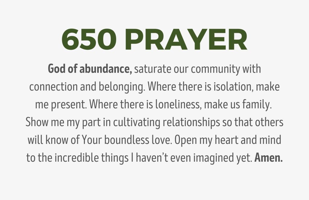 - PRAY: The 6:50 Prayer daily, setting an alarm for 6:50 (AM or PM) to pray for our church’s vision..