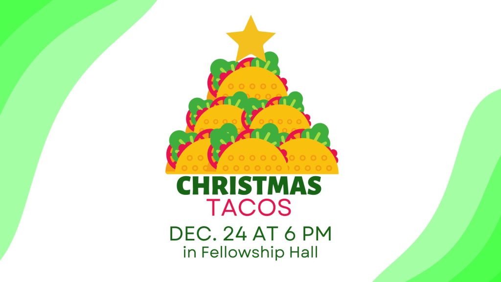 If you find yourself wondering what to eat on Christmas Eve or wanting to start a new tradition, join the church staff in the Fellowship Hall after the 5 pm service. Chef Rasul Welch will be making his world-famous tacos!