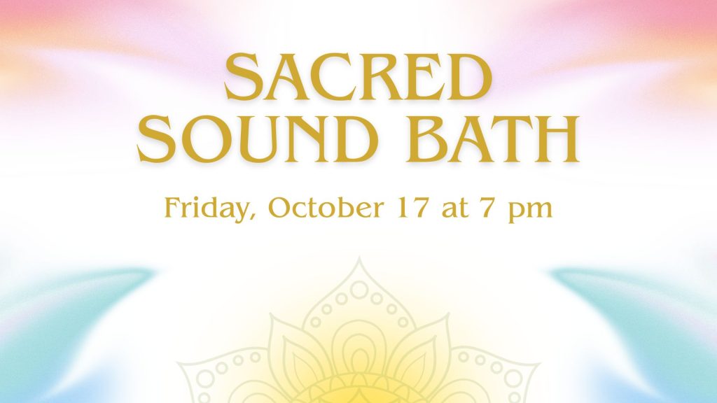 Friday October 17, 2025 at 7 pm in the Fellowship Hall: Step into an hour of deep rest and renewal through the healing power of sound. A sacred sound bath* invites you to simply lie back and be immersed in soothing vibrations from instruments like singing bowls, gongs, and chimes. The gentle waves of sound create space for relaxation, prayerful reflection, and a sense of spiritual grounding.